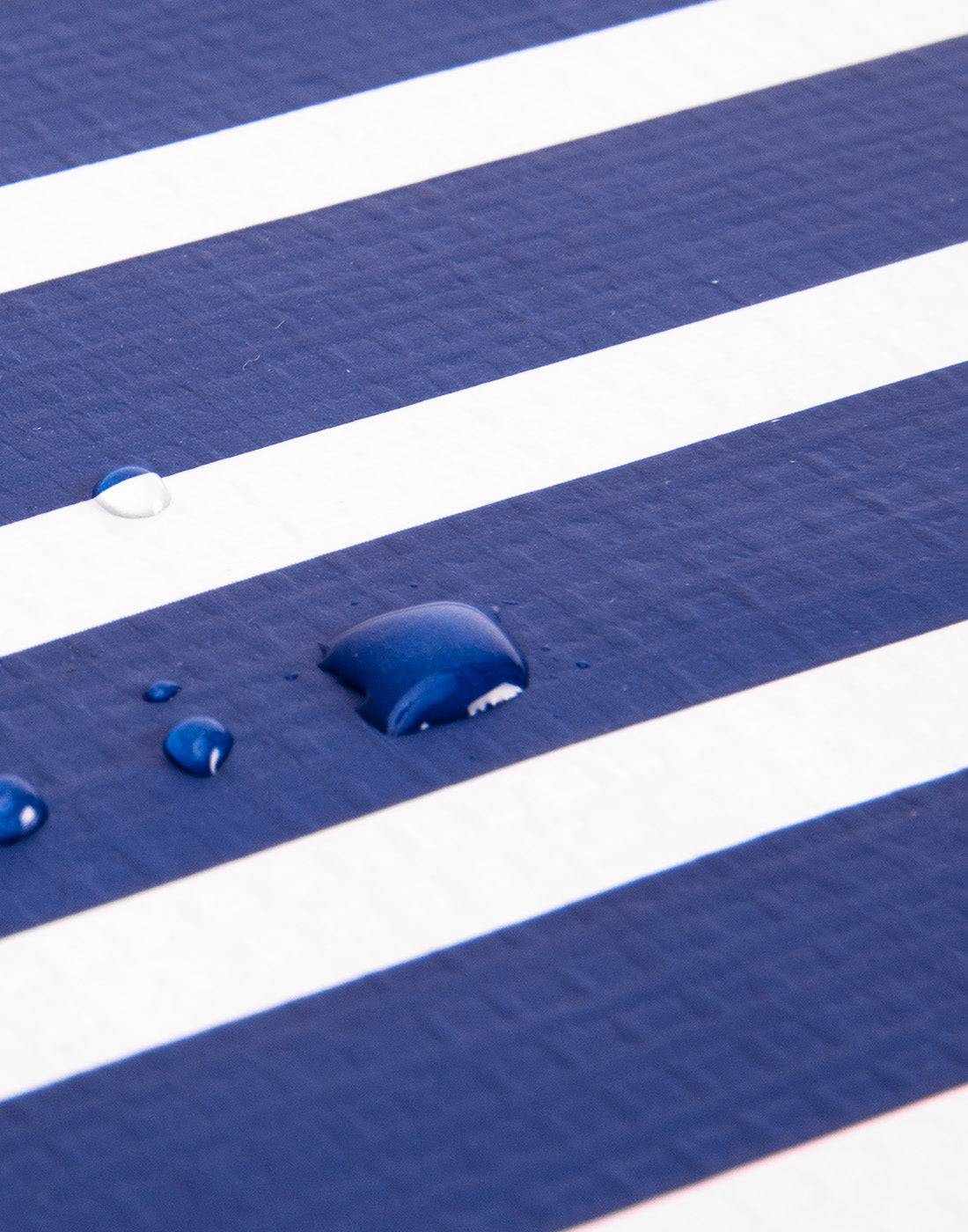 Heat-laminated with a water-resistant coating, this soft fabric resists dirt, stains, and moisture.